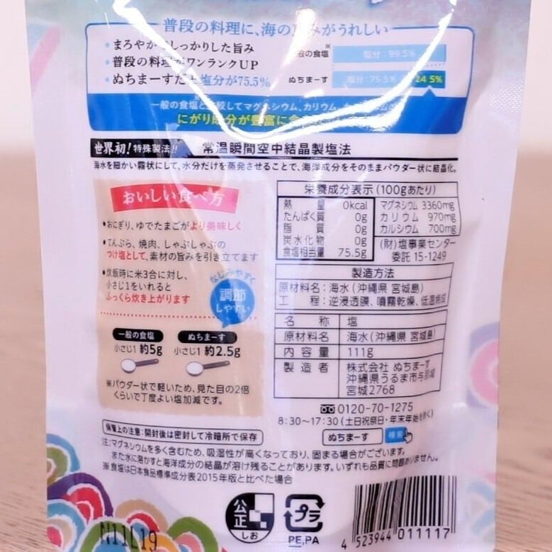 上野シェフの一言「塩は海からの贈り物。塩は単に味を付けるだけではなく、からだづくりに欠かせないミネラルを摂取する大切な栄養源です。これまで色々な塩に出会いましたが、一番おすすめしたい塩です。」